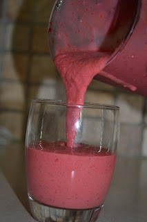 Mellan bloggfix gjorde jag smoothie, så härligt att kunna öppna frysen och tina några bär från trädgården och känna sommarsmaker igen! Hallon och jordgubbar fick smaksätta vaniljyoghurten och en grå söndag fick genast lite mer färg!
